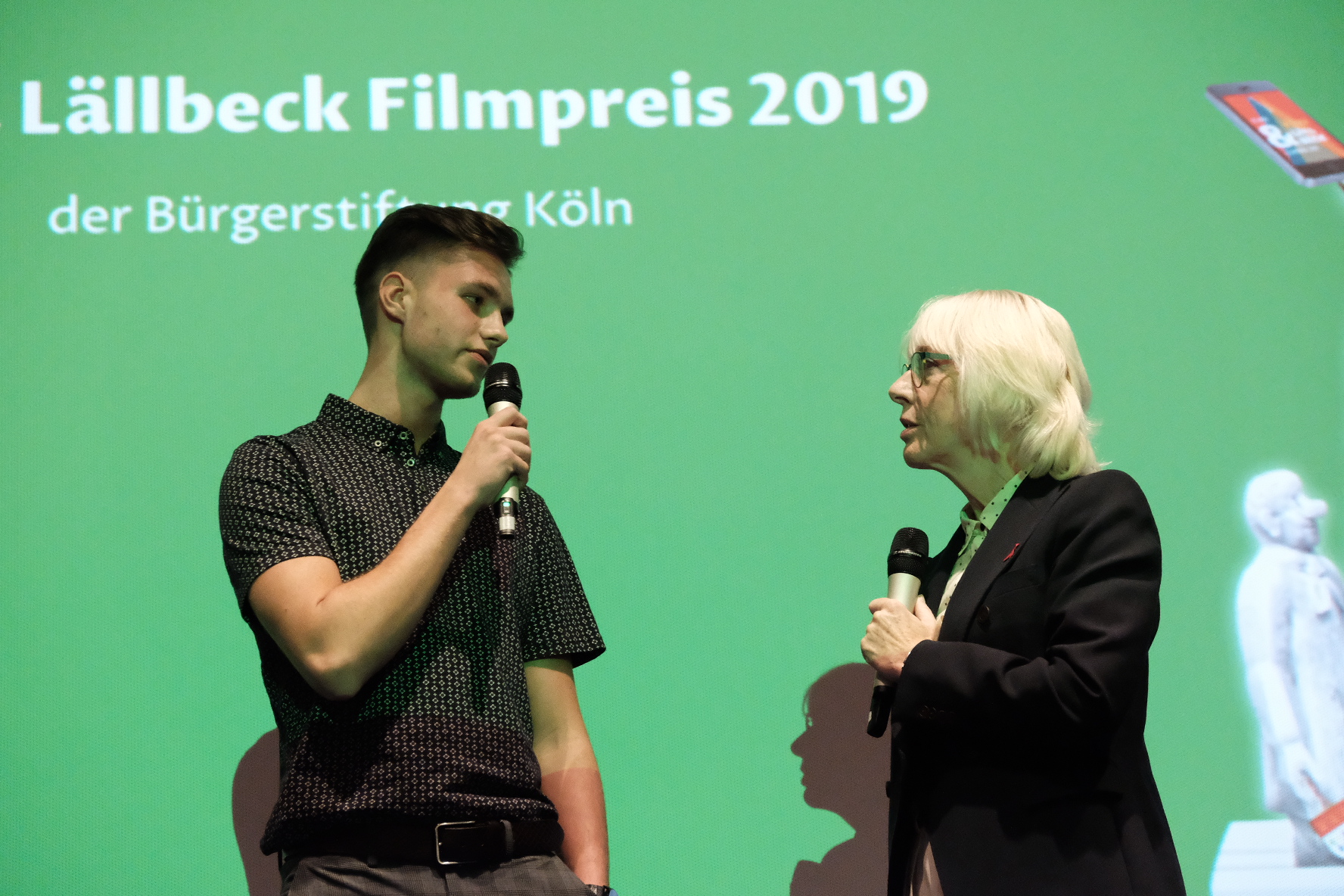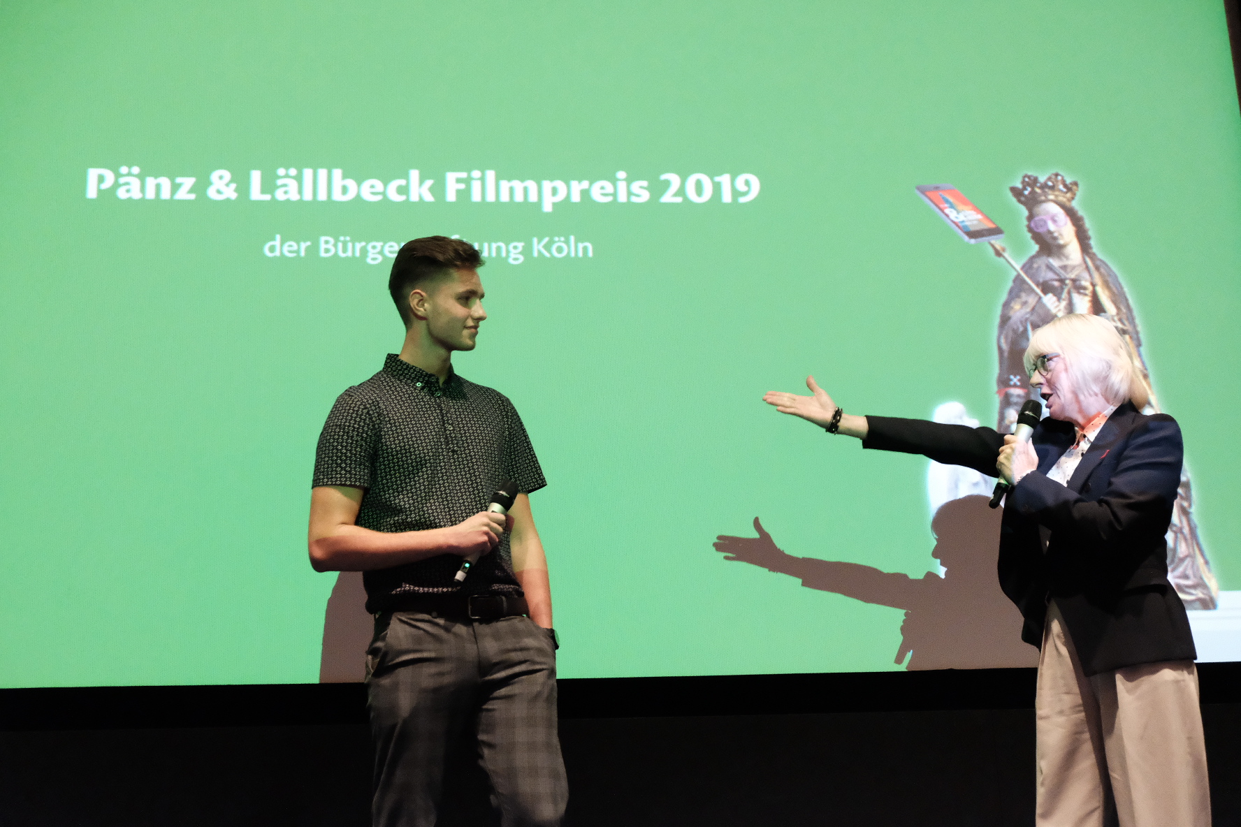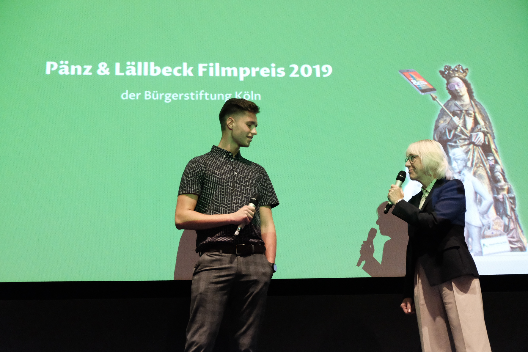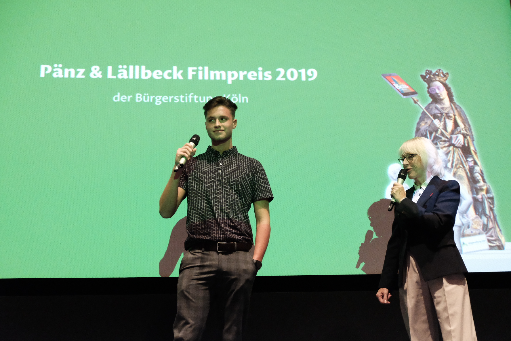 Ein junger Nachwuchsfilmer aus Bergisch Gladbach konnte die Kategorie der 17- und 18-Jährigen für sich entscheiden. Christoph besuchte in seinem Film verschiedene Orte in Köln, welche die Stadt für ihn besonders machen. Seine Laudatorin, Bürgermeisterin Elfi Scho-Antwerpes, war beeindruckt von seinem meinungsstarken Beitrag. Gerne überreichte sie ihm den „kölschen Oscar“, wie sie den „Pänz & Lällbeck Filmpreis“ mit einem Augenzwinkern nannte. Christoph will das Preisgeld dem Förderverein seiner Schule zur Verfügung stellen.