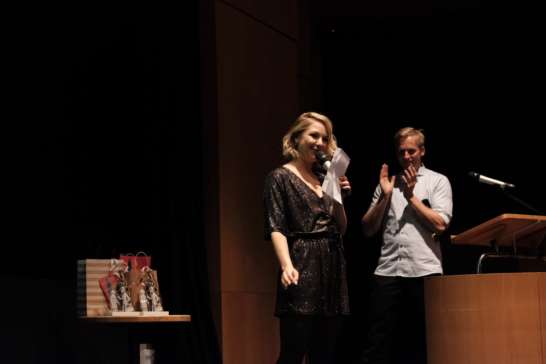 Wie der Moderator der Gala, Simon Wessel-Therhorn, bereits zu Beginn der Veranstaltung angekündigt hatte, ging am Ende keiner der Teilnehmenden leer aus. Zum Abschluss durften alle einmal unter großem Applaus auf die Bühne kommen und erhielten hier attraktive Preispakete. Danach wurde dann noch im Foyer des Filmforums gemeinsam gefeiert. Hierbei sorgten die „DJs für den guten Zweck“, genauer gesagt DJ Marc Markus und DJ Jan Grooveshaker Brückner, für ausgelassene Partystimmung.