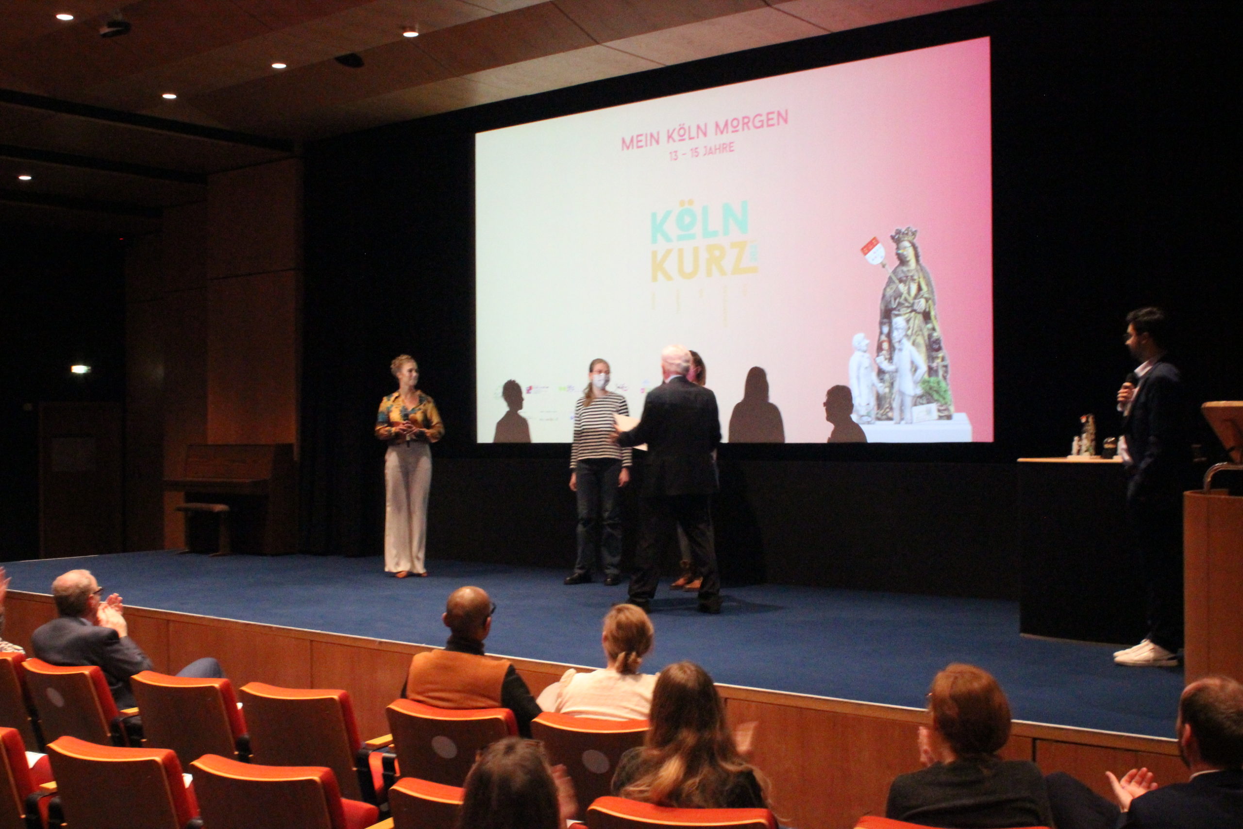 „Mein Köln morgen“ – so lautete die Aufgabenstellung beim Jugendfilmwettbewerb „Köln Kurz 2021“ der Bürgerstiftung Köln. Die teilnehmenden Jugendlichen zeigten dabei in kurzen Videos ihre Visionen der näheren und ferneren Zukunft der Stadt. Am Samstag, 30. Oktober 2021, fand die Preisverleihung im Filmforum NRW im Museum Ludwig statt. Hier wurden die Gewinner*innen in den Alterskategorien und des Publikumspreises ausgezeichnet.