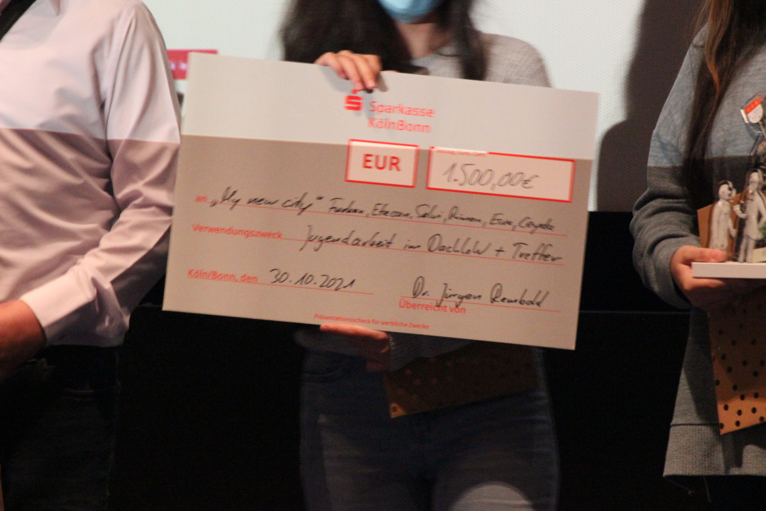 Bei der Preisverleihung überbrachte Bürgermeister Dr. Ralf Heinen ein Grußwort der Stadt. Er wies auf das Kinder- und Jugendbüro der Stadt Köln hin, wo sich die Jugendlichen bei der Stadt Gehör für ihre Anliegen verschaffen können. Dr. Jürgen Rembold, der mit seiner Stiftung den Jugendfilmwettbewerb finanziell großzügig unterstützt hatte, betonte darüber hinaus, wie wichtig es sei, so früh wie möglich mit einem bürgerschaftlichen Engagement zu beginnen. Zumal ein solches Engagement auch ein entscheidender Glücksfaktor im eigenen Leben sein könne.