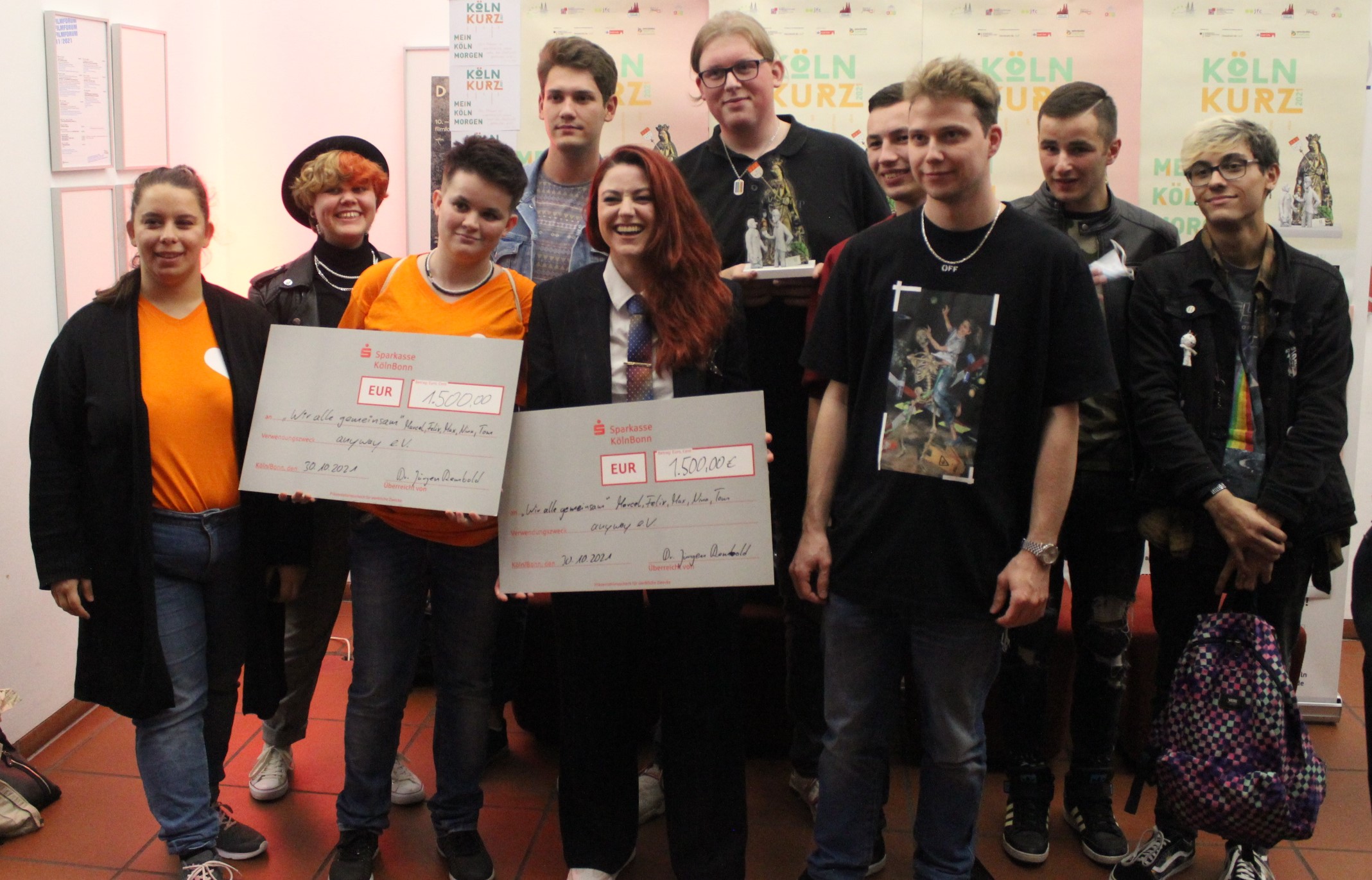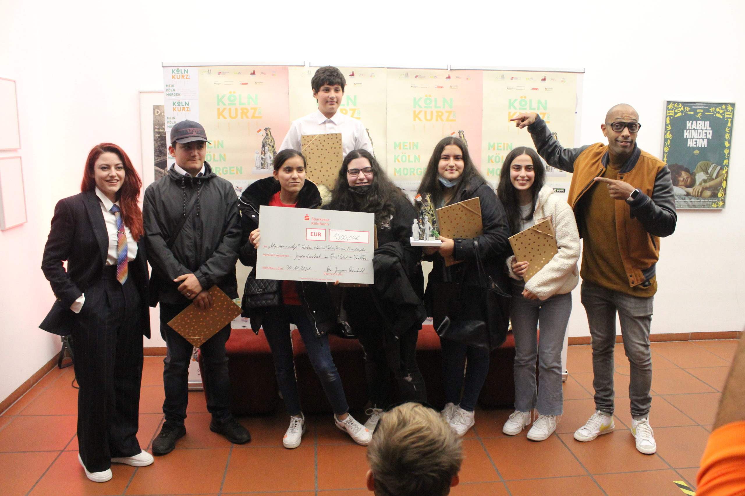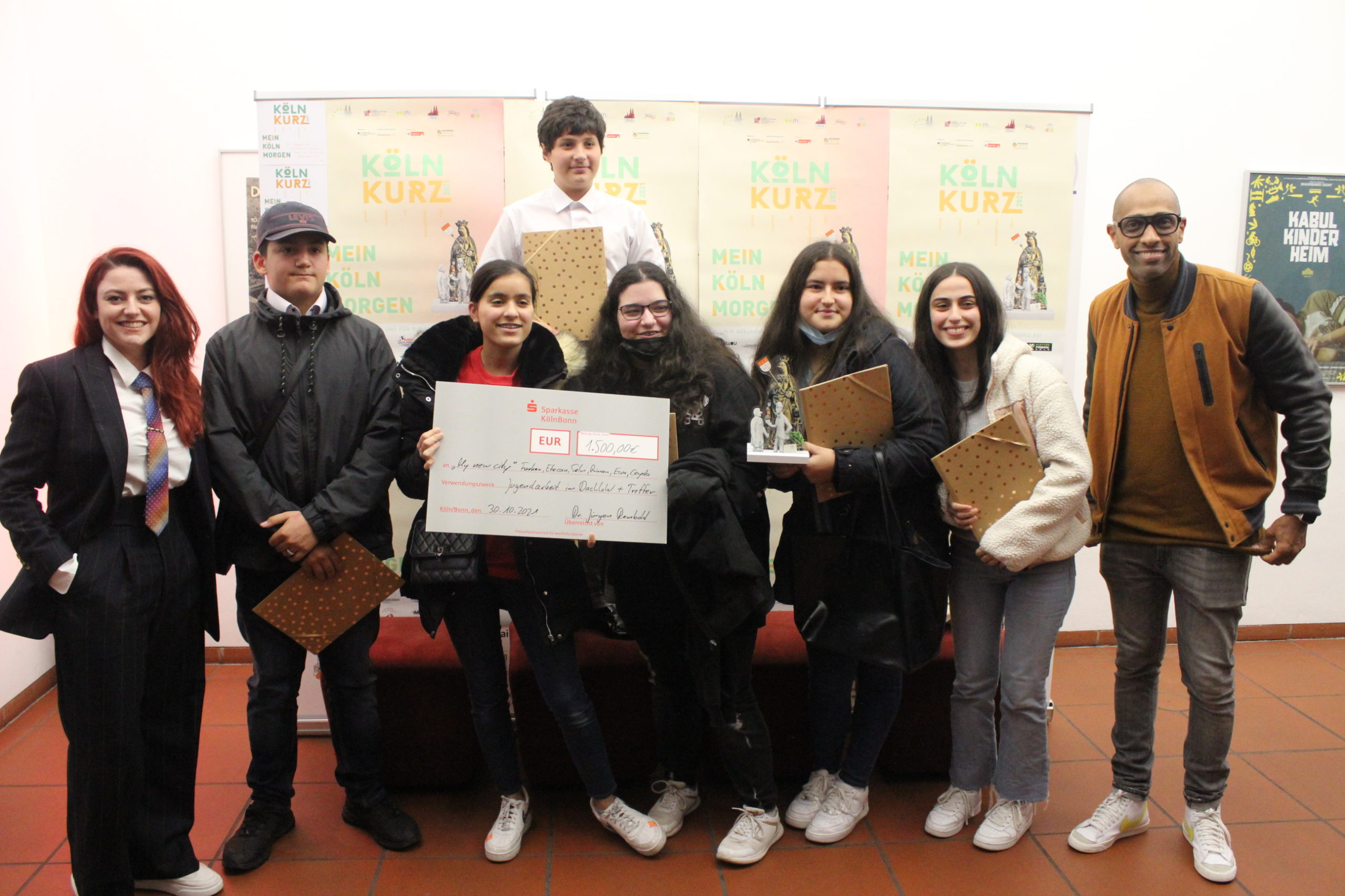 Der Filmpreis „Köln Kurz 2021“ war mit insgesamt 6.000 Euro dotiert, darüber hinaus gab es zahlreiche Sachpreise zu gewinnen. Einen großen Teil des Preisgeldes gaben die Jugendlichen an gemeinnützige Einrichtungen in Köln weiter, nämlich an das Jugendzentrum anyway, an die Kölner Kinderkrebshilfe sowie an die Jugendzentren DachloW und Treffer.