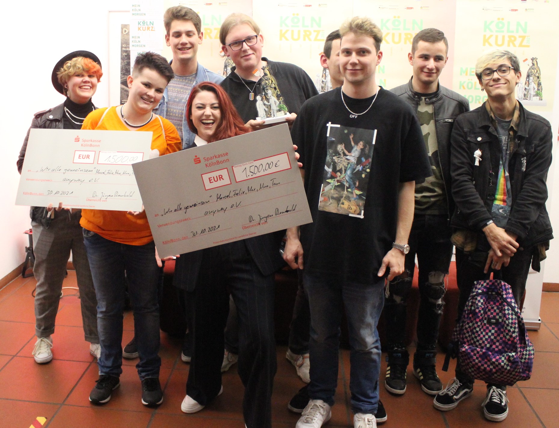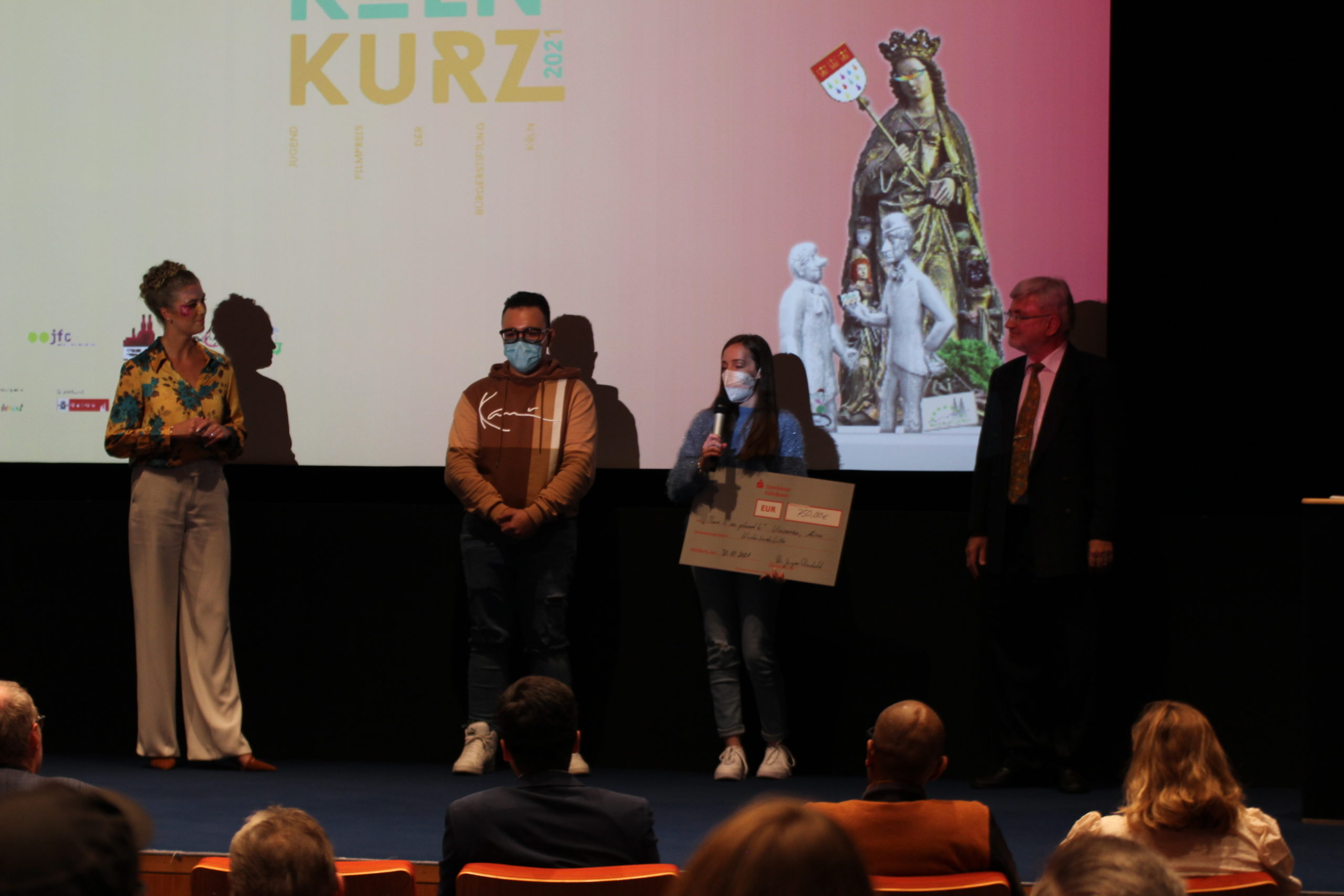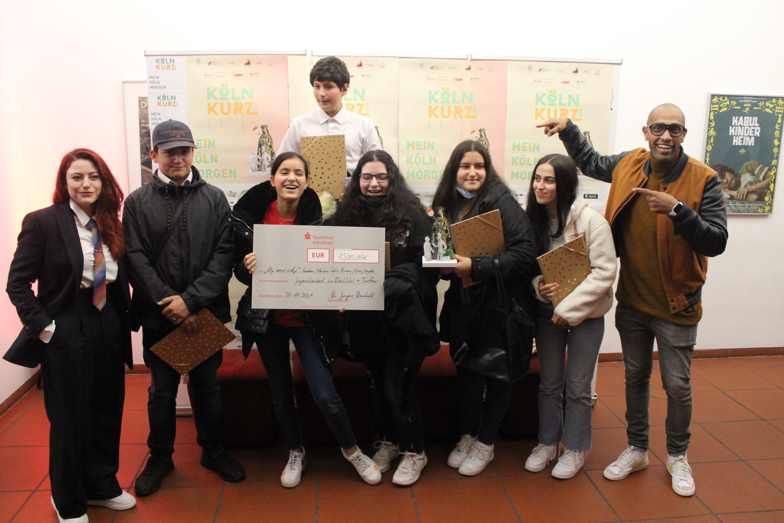 Der Filmpreis „Köln Kurz 2021“ war mit insgesamt 6.000 Euro dotiert, darüber hinaus gab es zahlreiche Sachpreise zu gewinnen. Einen großen Teil des Preisgeldes gaben die Jugendlichen an gemeinnützige Einrichtungen in Köln weiter, nämlich an das Jugendzentrum anyway, an die Kölner Kinderkrebshilfe sowie an die Jugendzentren DachloW und Treffer.