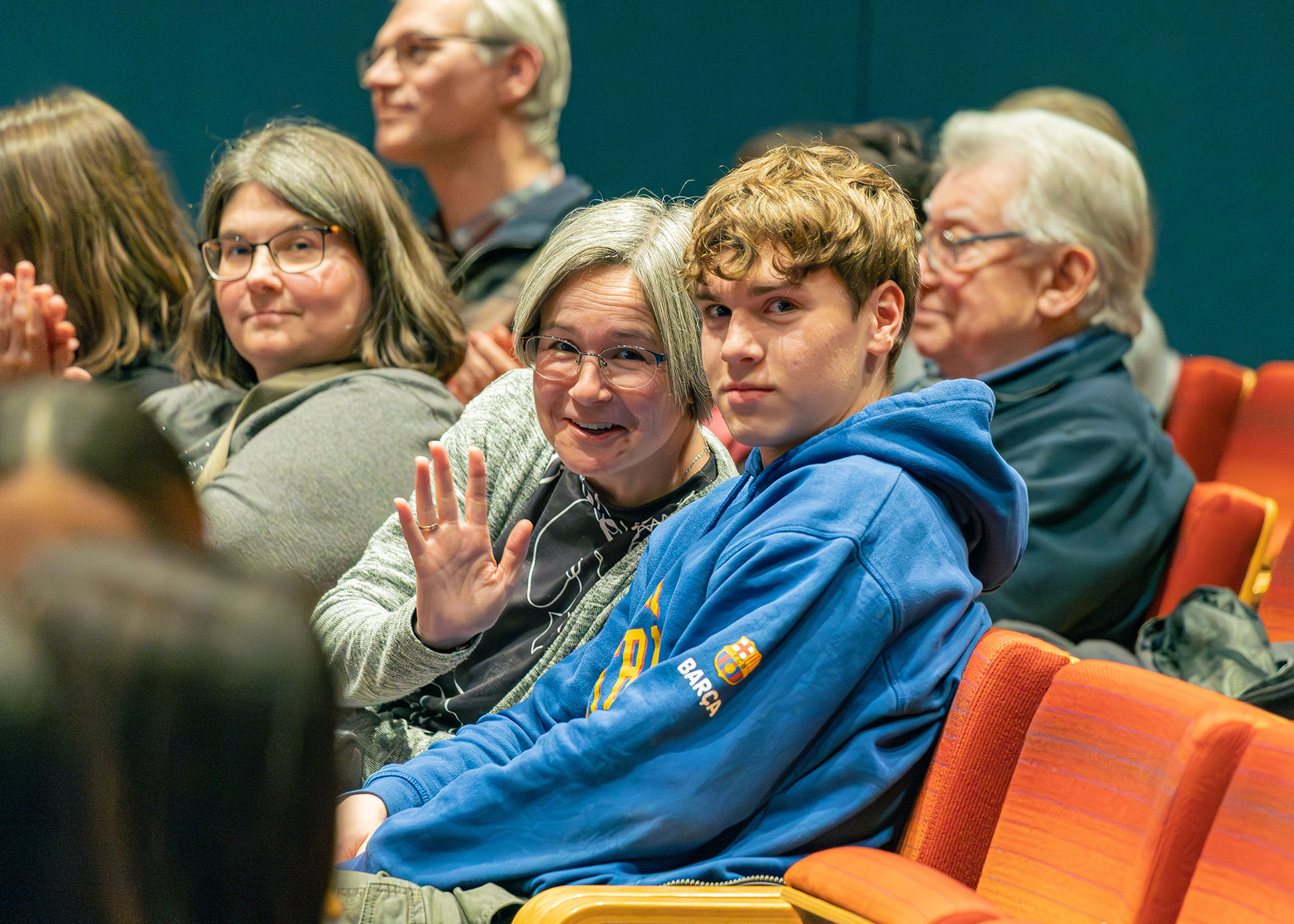 Danach wurde es dann richtig spannend, der erste Jury-Preis stand an. Diesen gewann in der Alterskategorie „13 – 15 Jahre“ Arnas mit seinem Kurzfilm „Safespaces“. Hierin befasste er sich mit der grundsätzlichen Frage, was einen Freiraum (hier: Safespace) ausmacht. Egal wo du bist, ob an der Bushaltestelle oder um 3 Uhr nachts am Handy: Es gibt immer eine Möglichkeit, der Realität zu entweichen und frei zu sein. Die Frage ist jedoch: „Aber wie?“ Jury-Mitglied und Laudatorin Solveig Claßen, Prorektorin an KHM Kunsthochschule für Medien Köln, würdigte neben den inhaltlichen Aspekten insbesondere die hervorragende stilistische Ausführung des Kurzfilms. Mitgewirkt dabei haben außerdem Anna, Matas und Johann.