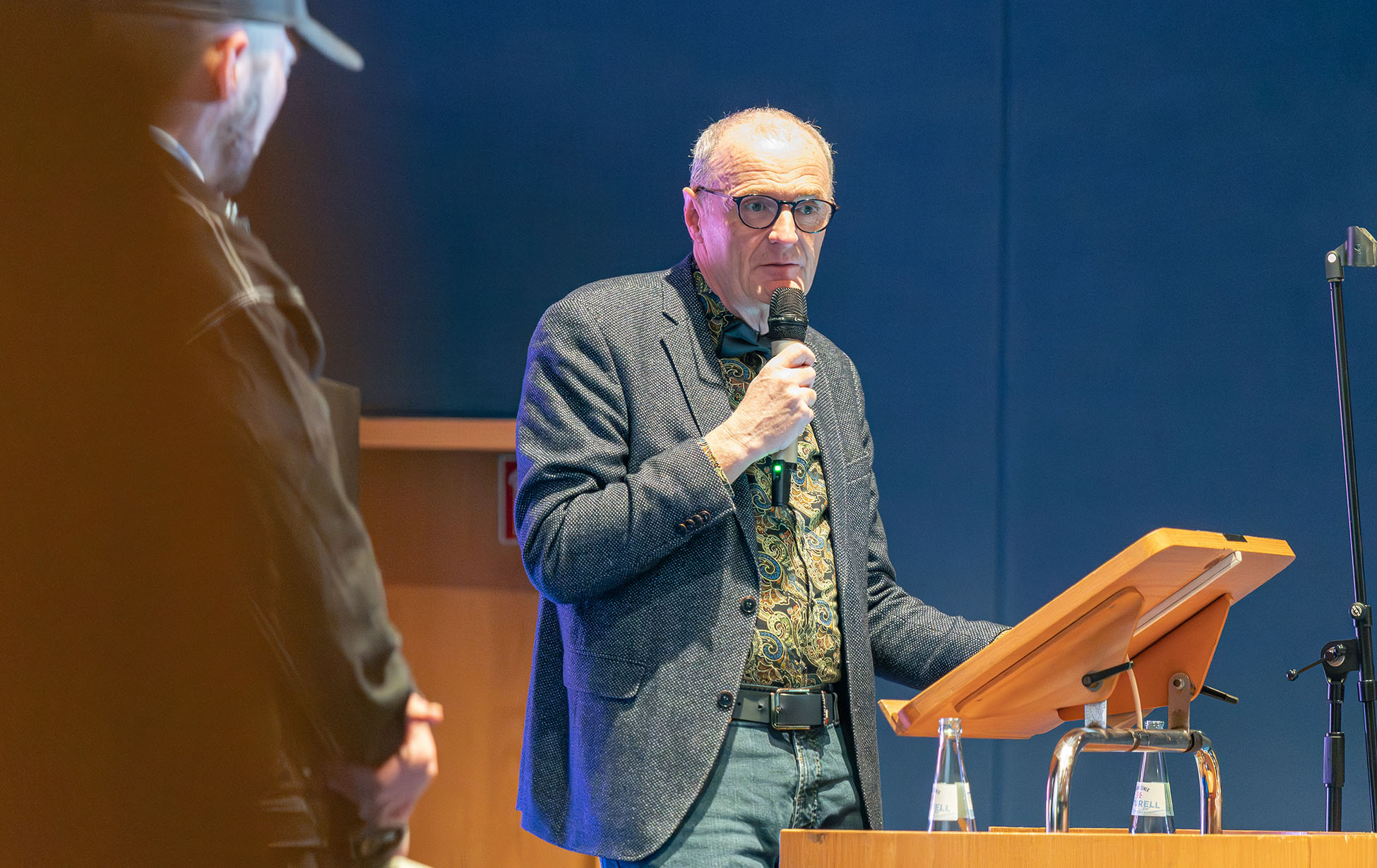 Dr. Jürgen Rembold hielt daraufhin ein starkes Plädoyer für mehr ehrenamtliches Engagement. Genau das fördert er mit seiner Stiftung, genauer gesagt Projekte, die gemeinwohlorientiertes Handeln anstoßen und unterstützen. Dazu zählt auch unser Jugendfilmpreis „Köln Kurz“. Schließlich müssen die Gewinner*innen hier zwei Drittel ihres Preisgeldes an eine gemeinnützige Organisation ihrer Wahl in Köln weitergeben. In seinem Grußwort warb Dr. Rembold bei den Jugendlichen dafür, sich für die Gesellschaft einzusetzen – „die Freiräume dazu habt ihr hierzulande“.