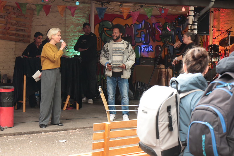 Das Allerweltshaus richtete gemeinsam mit dem Pambazuka Swahili Kulturverein ein interkulturelles Hoffest unter dem Motto „Gemeinsam für Gerechtigkeit“ aus. Es regnete in Strömen, doch die Stimmung war sonnig: Es kamen über 500 Besucher*innen, die sich im Haus und im Innenhof begegneten, miteinander ins Gespräch kamen und Vielfalt feierten. Mehr als 16 Gruppen präsentierten ihre Arbeit – von Café Palestine über die Kulturkinder Ehrenfeld und den Iranisch-deutschen Frauenverein bis hin zur Informationsstelle Lateinamerika. Ein buntes Kulturprogramm mit Musik, Clownerie, Zauberei und Mitmachstationen sorgte für eine lebendige Atmosphäre. Viele Beiträge waren ehrenamtlich getragen; die Förderung der Bürgerstiftung ermöglichte vor allem die technische Ausstattung.